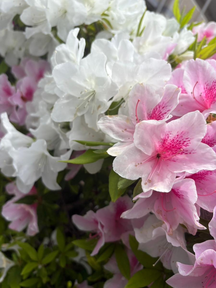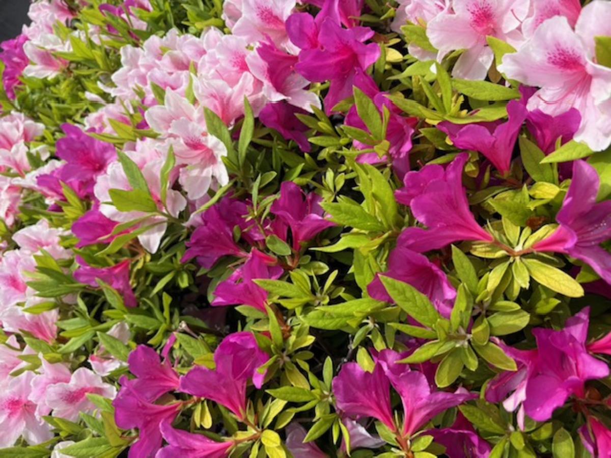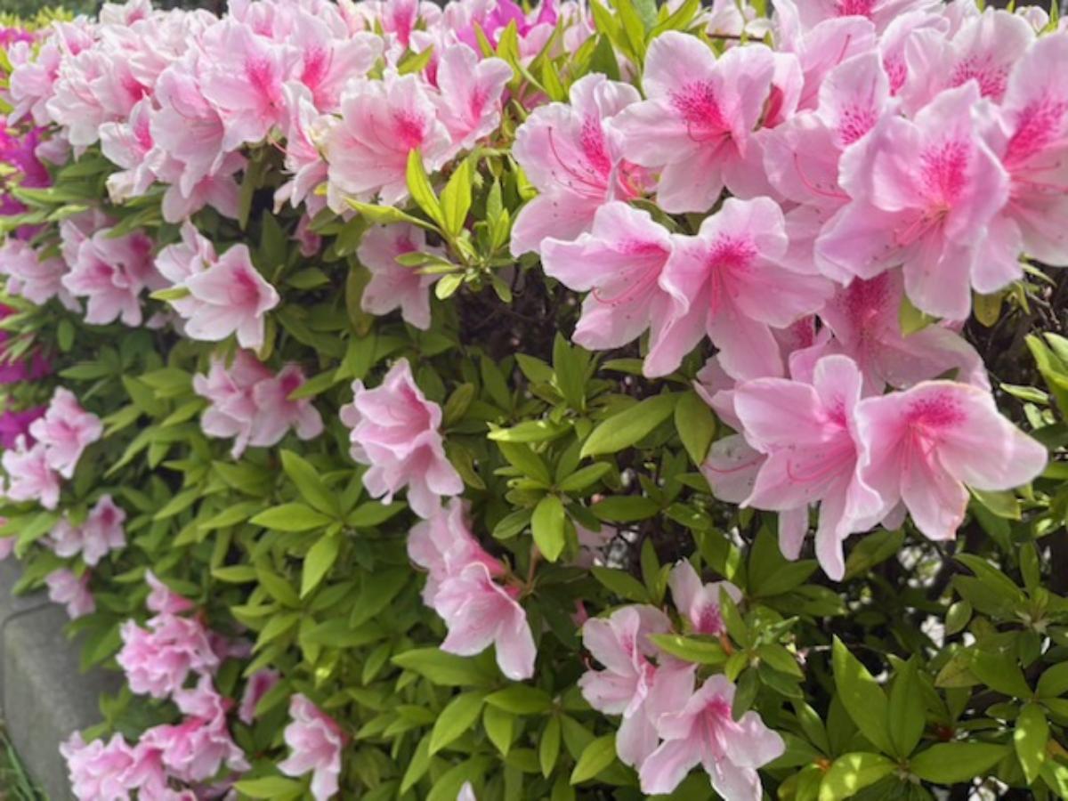 道の脇いっぱいに咲いた、ピンクや白の花たち。